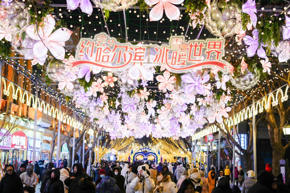 People visit the Central Street in Harbin, northeast China's Heilongjiang Province, Jan. 30, 2025. (Xinhua/Wang Jianwei)