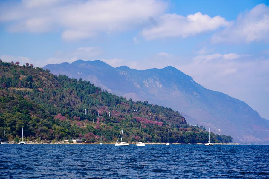 This photo shows the scenery of Fuxian Lake in Yuxi City, southwest China's Yunnan Province, Jan. 12, 2025. (Xinhua/Wang Jingyi)