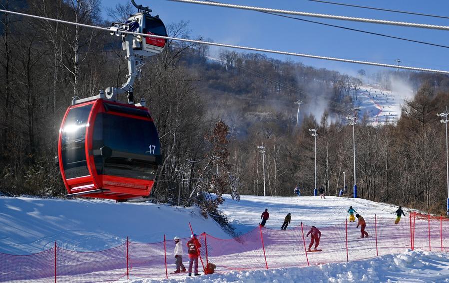 Skiers enjoy the sport at the Beidahu Ski Resort in Jilin City, northeast China's Jilin Province, on Nov. 23, 2024. (Xinhua/Yan Linyun)