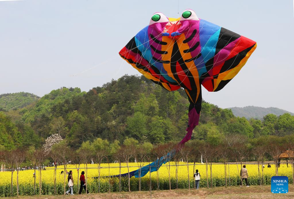 Tourists fly a kite at Mafan scenic area in Yiwu City, east China's Zhejiang Province, April 5, 2025. China recorded 126 million domestic trips during the three-day Qingming Festival holiday that ended Sunday, a 6.3 percent increase from the previous year, according to data released by the Ministry of Culture and Tourism on Monday.(Photo by Gong Xianming/Xinhua)