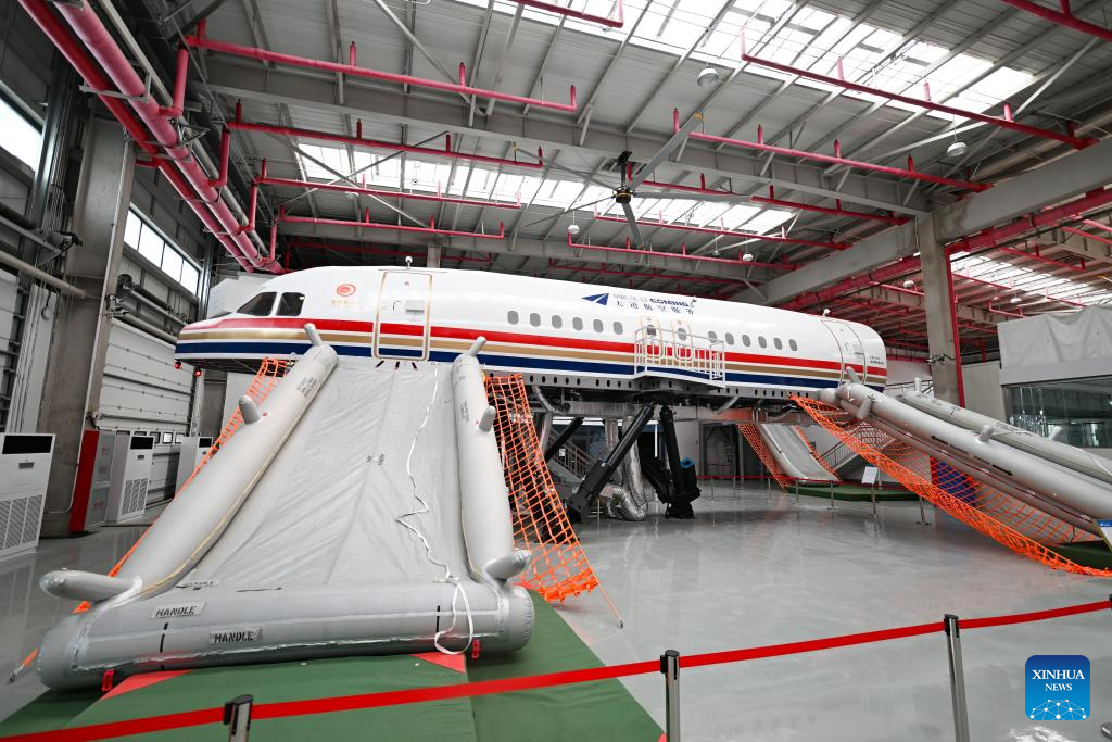 This photo taken on April 9, 2025 shows the site of a firm specializing in flight simulator R&D and training inside the comprehensive bonded zone of Beijing Daxing International Airport in Beijing, capital of China. (Xinhua/Chen Zhonghao)