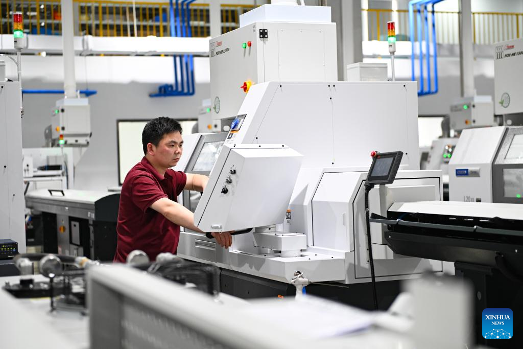 A staff member works at Beijing CRS Medical Device Co., Ltd. inside the comprehensive bonded zone of Beijing Daxing International Airport in Beijing, capital of China, April 9, 2025. (Xinhua/Chen Zhonghao)