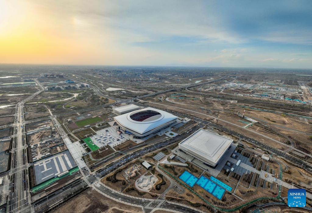 An aerial drone photo taken on March 27, 2025 shows the Xiong'an sports center in Xiong'an New Area, north China's Hebei Province. (Xinhua/Mu Yu)