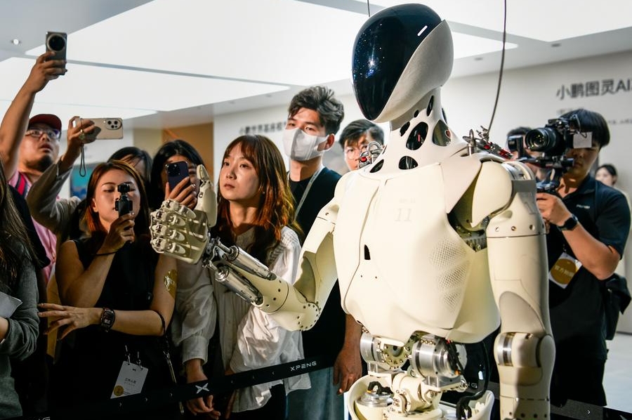 This photo taken on April 25, 2025 shows robot IRON of Xiaopeng at the 21st Shanghai International Automobile Industry Exhibition in east China's Shanghai. (Xinhua/Wang Xiang)