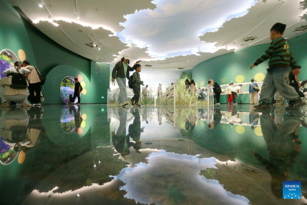 Tourists visit the China Grand Canal Museum in the city of Yangzhou, east China's Jiangsu Province, May 3, 2025. During the five-day May Day holiday, museums across China recorded more than 60.49 million visits, setting a new record and marking a 17 percent increase year on year. (Photo by Meng Delong/Xinhua)