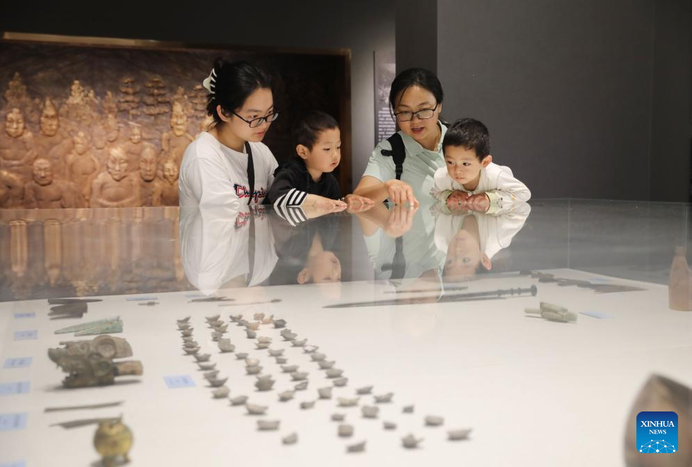 Tourists visit a museum in Daoxian County of Yongzhou City, central China's Hunan Province, May 3, 2025. During the five-day May Day holiday, museums across China recorded more than 60.49 million visits, setting a new record and marking a 17 percent increase year on year. (Photo by He Hongfu/Xinhua)