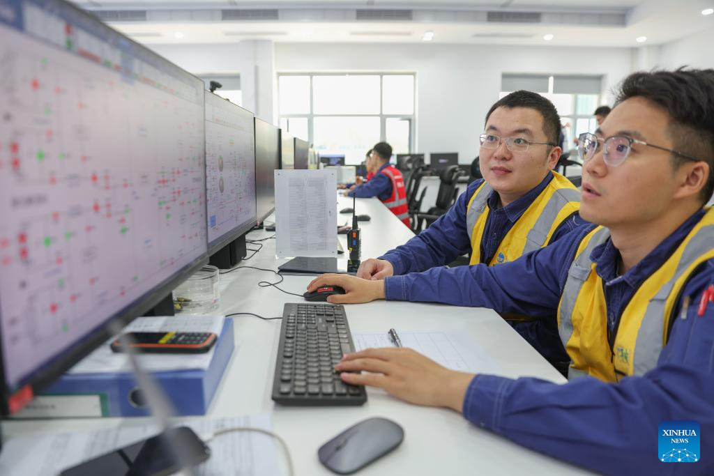 Maintenance workers monitor equipment operation via a smart partol system at the Yubei converter station of the Hami-Chongqing ±800 kV ultra-high voltage direct current transmission project, in southwest China's Chongqing Municipality, June 10, 2025. The State Grid Corporation of China on Tuesday announced the operation of the ±800 kV ultra-high voltage direct current transmission project linking eastern Xinjiang's Hami with southwest China's Chongqing Municipality.