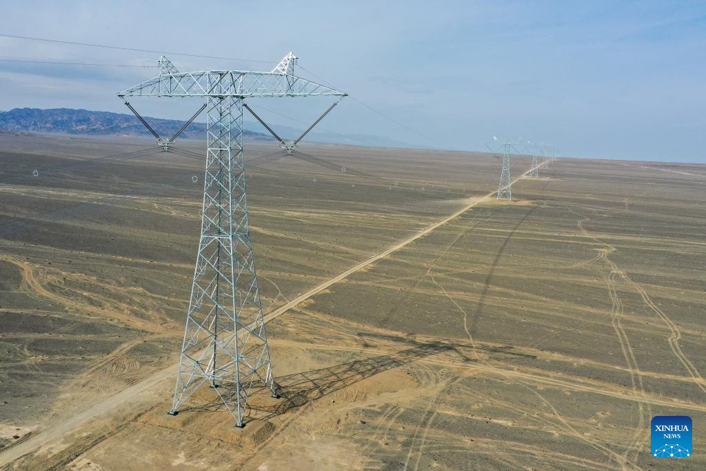 This marks China's third major project to transmit electricity from energy-rich Xinjiang Uygur Autonomous Region to other parts of the country. (Xinhua/Ding Lei)