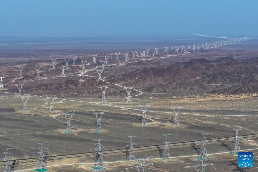 This marks China's third major project to transmit electricity from energy-rich Xinjiang Uygur Autonomous Region to other parts of the country. (Xinhua/Ding Lei)