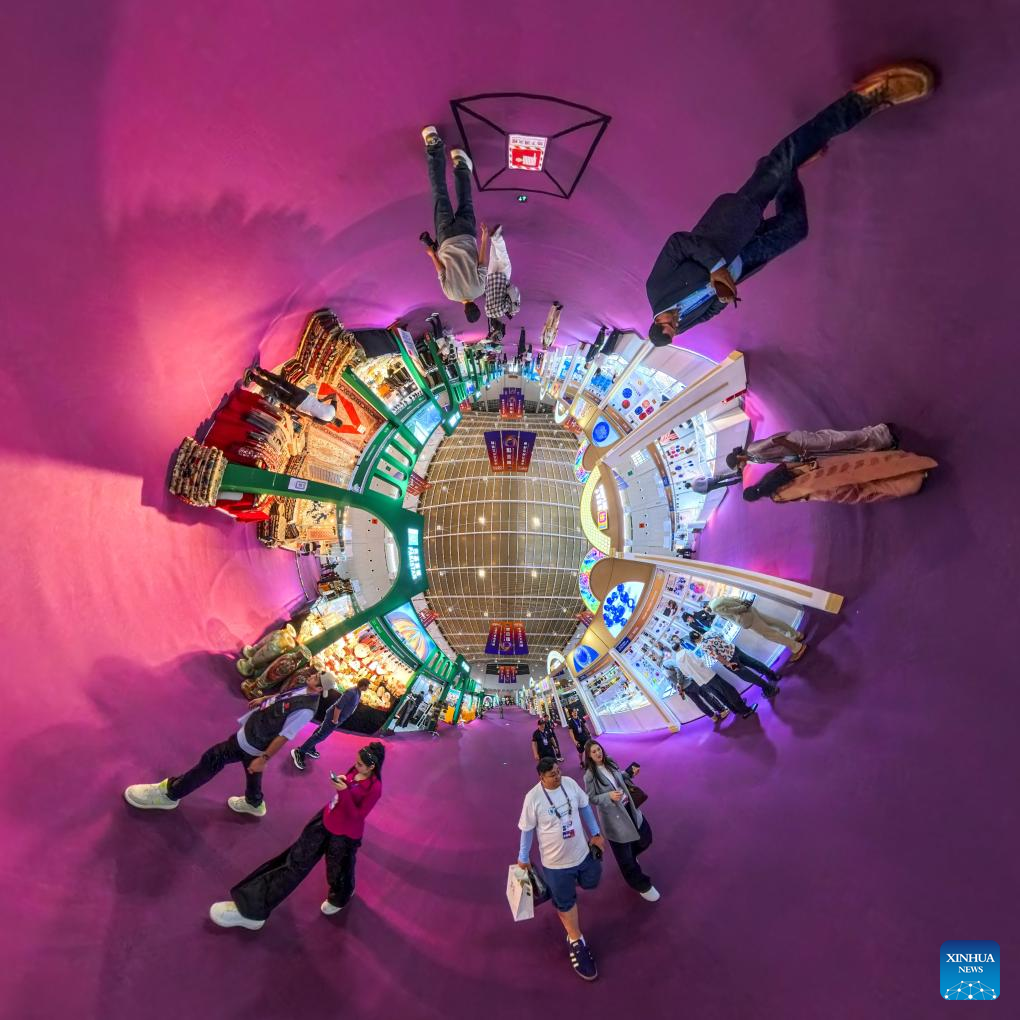 This panoramic photo taken on June 19, 2025 shows people visiting the South Asia Pavilion during the 9th China-South Asia Expo in Kunming, southwest China's Yunnan Province, June 19, 2025. (Xinhua/Hu Chao)
