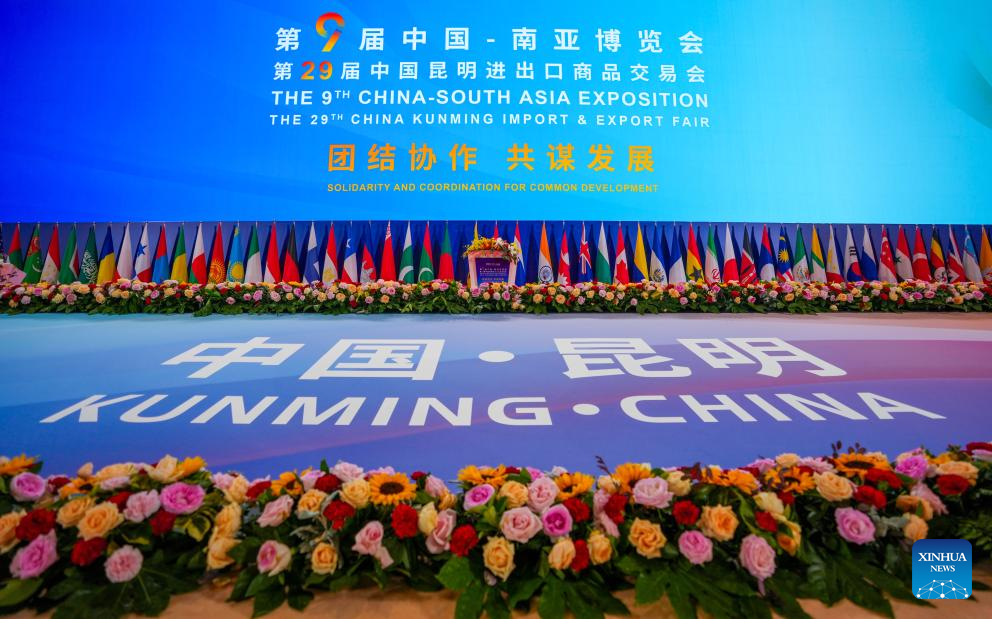 This photo taken on June 19, 2025 shows the site of the opening ceremony of the 9th China-South Asia Expo in Kunming, southwest China's Yunnan Province. (Xinhua/Chen Xinbo)