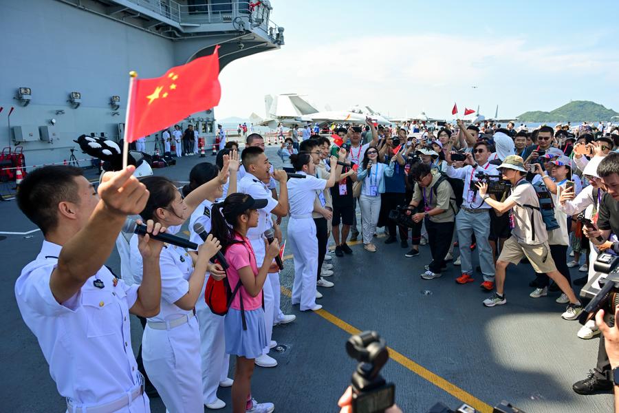 The Shandong aircraft carrier was open to the public for visits. Starry Lee, a member of the National People's Congress Standing Committee, said that this allowed people to experience firsthand the remarkable achievements of the country's naval modernization, and held significant meaning in fostering a stronger sense of patriotism in Hong Kong society.