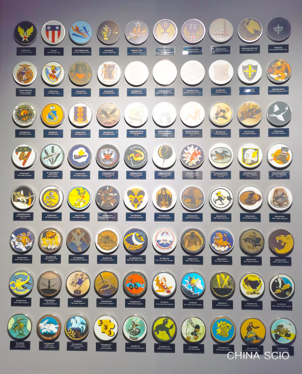 Emblems of the Flying Tigers squadrons, displayed at the Flying Tigers Memorial Museum in Zhijiang Dong autonomous county, Huaihua city, Hunan province. [Photo by Wang Xinguang/China SCIO]
