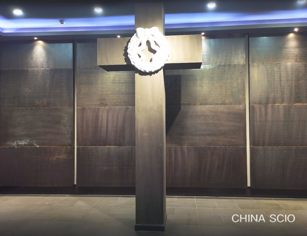 The Wall of Heroes inscribed with the names of Chinese Air Force soldiers and Flying Tigers members at the Flying Tigers Memorial Museum. [Photo by Wang Xinguang/China SCIO]