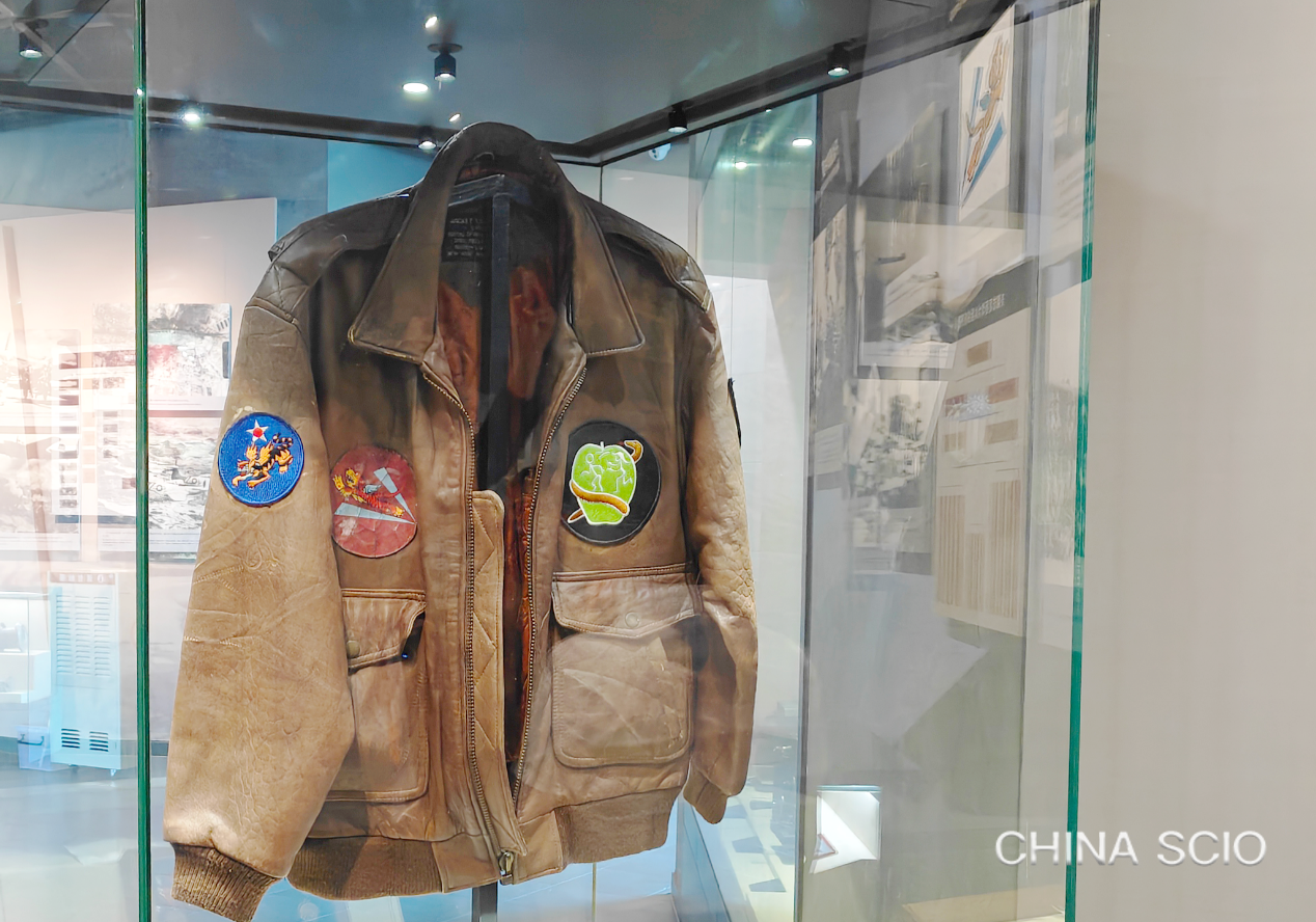 A flight jacket of a Flying Tigers member, displayed at the Flying Tigers Memorial Museum. [Photo by Liu Jian/China SCIO]
