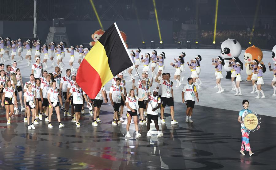 Members of the delegation of Belgium parade during the opening ceremony of the World Games 2025 in Chengdu, southwest China's Sichuan Province, on Aug. 7, 2025. (Xinhua/Jiang Kehong)