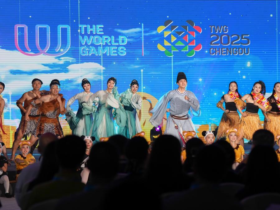 Artists perform during the opening ceremony of the TWG village for The World Games (TWG) 2025 Chengdu in Chengdu, southwest China's Sichuan Province, Aug. 3, 2025. (Xinhua/Wang Xi)