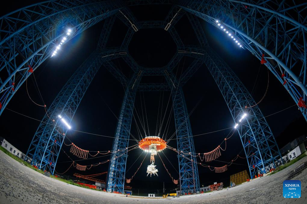 The test completed on Wednesday represents a key step in the development of China's manned lunar exploration program, and it also marks the first time that China has carried out a test for extraterrestrial landing and takeoff of a manned spacecraft, said the China Manned Space Agency. (Photo by Liu Yongjing/Xinhua)