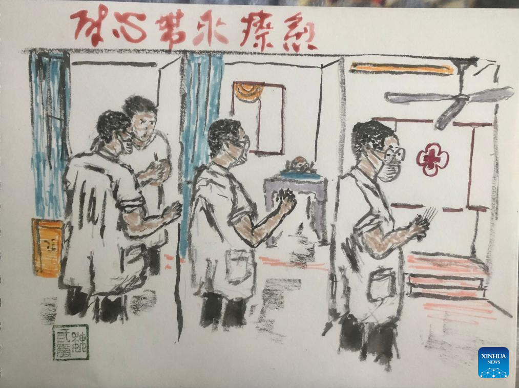 This file photo shows a painting with the words "Patience Brings Healing" written in Chinese that Thomas Wilkinson created for a local traditional Chinese medicine hospital in Anqing City, east China's Anhui Province. (Xinhua)
