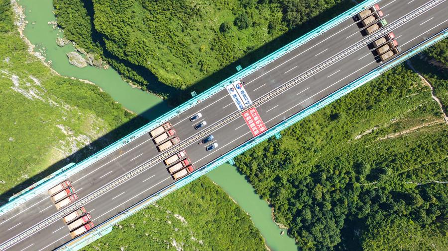 The bridge is also a key link on an expressway, forming part of Guizhou's ongoing push to knit together its rugged interior via modern highways.