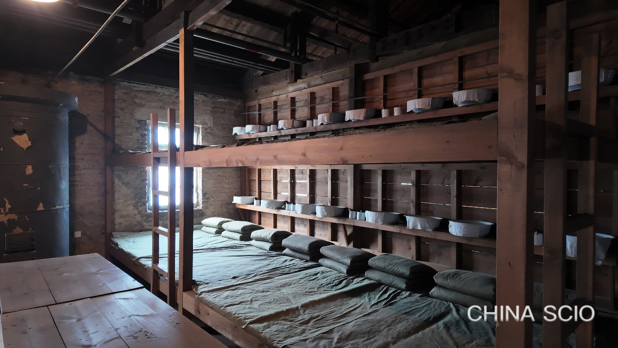 Replicas of POWs' sleeping bunks, displayed at the reconstructed section of the Shenyang WWII Allied Prisoners Camp Site Museum in Shenyang, Liaoning province. [Photo by Wang Xingguang/China SCIO]