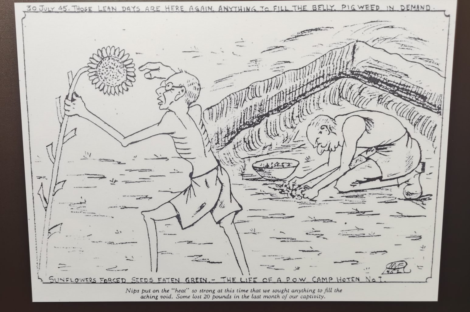 What made the POWs' daily routine even more vividly portrayed and recorded were the cartoons they drew during their internment. In a way echoed with Anne Frank's diary, which gave a personal view of life under Nazi persecution, these drawings capture the prisoners' daily moments under extreme oppression.