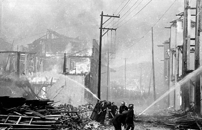 File photo shows people trying to put out fire after air-strikes carried out by Japanese army in southwest China's Chongqing, June 7, 1941. (Xinhua) (hdt)