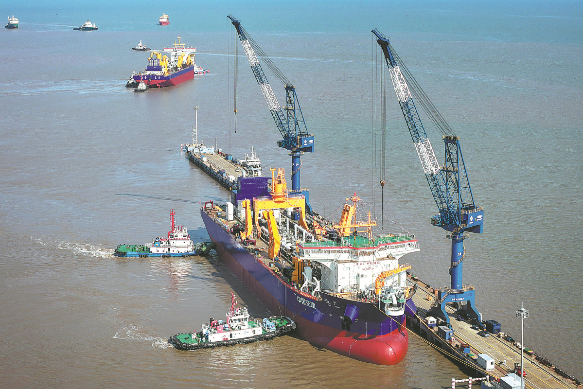 The vessels measure at 198 meters in length and 38.5 meters in width, with a maximum dredging depth of 120 meters. They are also equipped with an independently developed intelligent control system, said Zha Changmiao, executive director of China Communications Construction Co's Party Committee, on Tuesday.