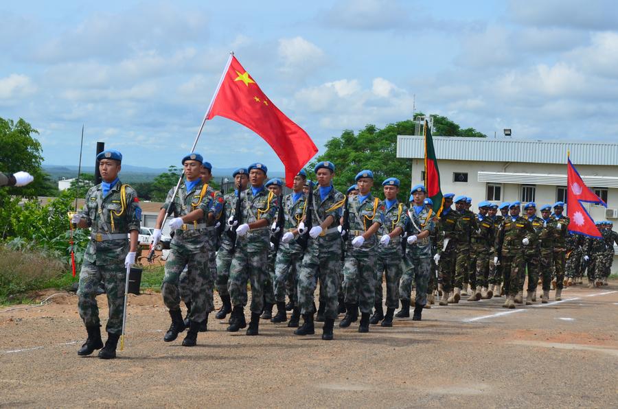 Chinese peacekeepers march during the celebrations to mark the International Day of the United Nations Peacekeepers in Juba, capital of South Sudan, May 29, 2019. (Xinhua/Denis Elamu)