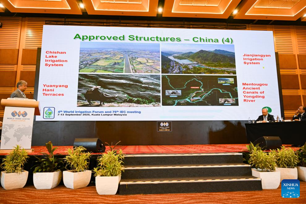 This photo taken on Sept. 10, 2025 shows a scene during the 76th International Executive Council Meeting of the International Commission on Irrigation & Drainage (ICID) in Kuala Lumpur, Malaysia. Four Chinese sites have been added to the World Heritage Irrigation Structures (WHIS) list, according to the Ministry of Water Resources. (Xinhua/Cheng Yiheng)