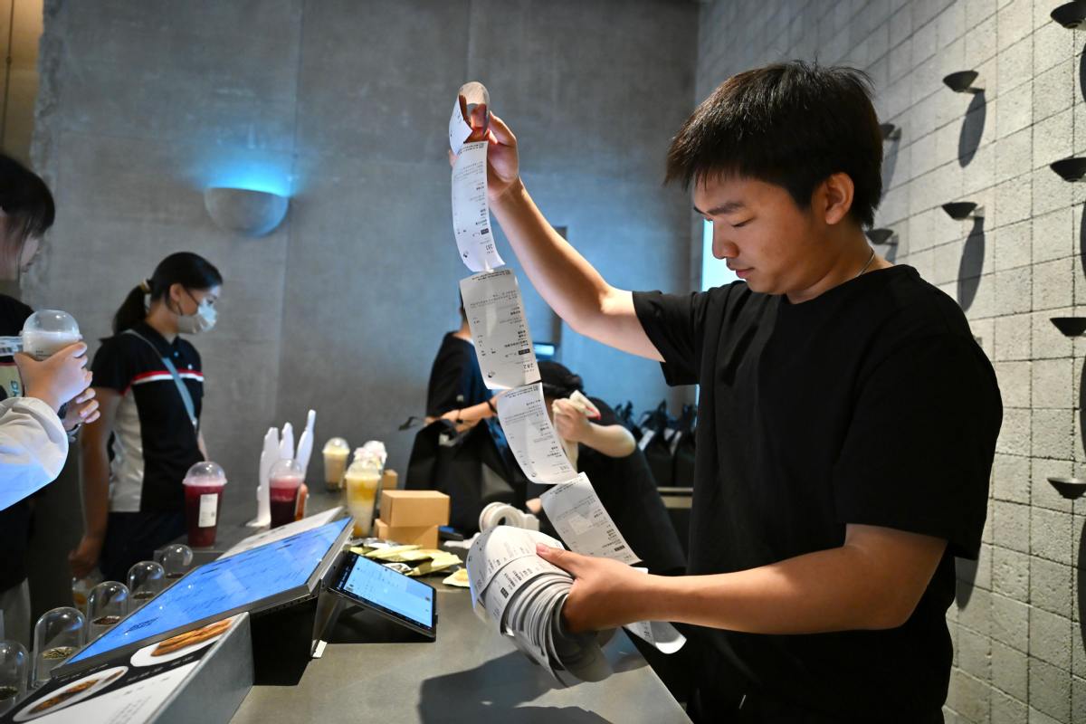 A staff member of a milk tea shop sorts orders in Beijing on Aug 7. WANG ZIRU/CHINA NEWS SERVICE