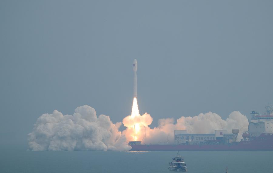 The rocket blasted off from the sea at 3:56 p.m. (Beijing Time) near the city of Rizhao. The Taiyuan Satellite Launch Center conducted the offshore launch mission.