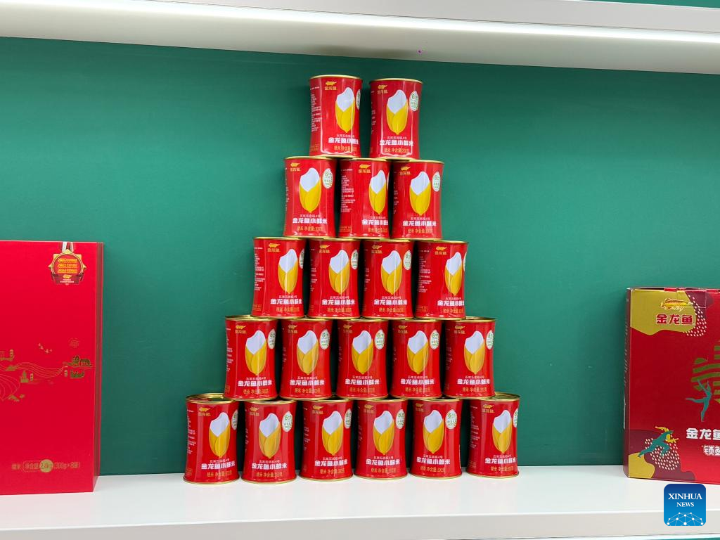 Agricultural products are pictured at a display hall of Yihai Kerry Arawana Holdings in Harbin, northeast China's Heilongjiang Province, Sept. 22, 2025. (Xinhua/Sun Xiaoyu)