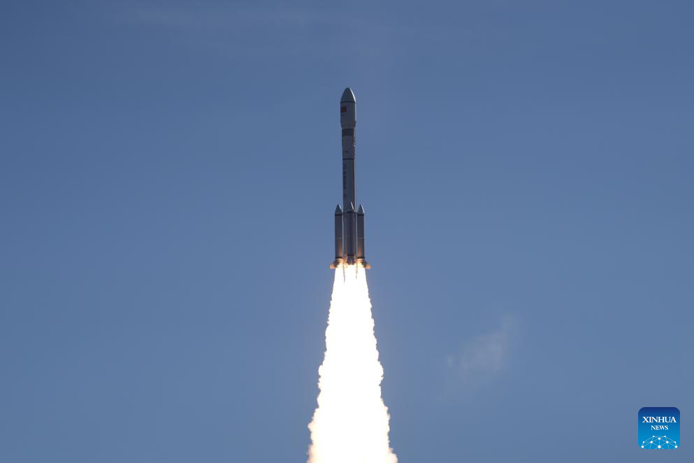 A modified Long March-6 carrier rocket carrying a new satellite group blasts off from the Taiyuan Satellite Launch Center in north China's Shanxi Province on Oct. 17, 2025. The satellite group, which will constitute the Spacesail Constellation -- a commercial Chinese low-orbit satellite network, was launched at 3:08 p.m. (Beijing Time) and entered its preset orbit successfully. (Photo by Wang Yapeng/Xinhua)