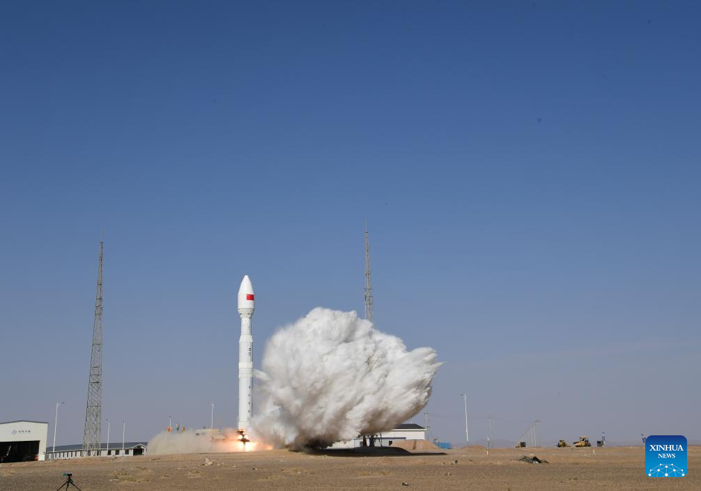 The Lijian-1 Y8 carrier rocket with three satellites blasts off from a commercial aerospace innovation pilot zone in northwest China, Oct. 19, 2025. China on Sunday launched the Lijian-1 Y8 carrier rocket with three satellites onboard. The rocket blasted off at 11:33 a.m. (Beijing Time) from a commercial aerospace innovation pilot zone in northwest China and successfully sent the satellites into the planned orbit. The three satellites are Pakistan remote-sensing satellite (PRSS-2), AIRSAT 03 and 04 satellites. (Photo by Wang Jiangbo/Xinhua)