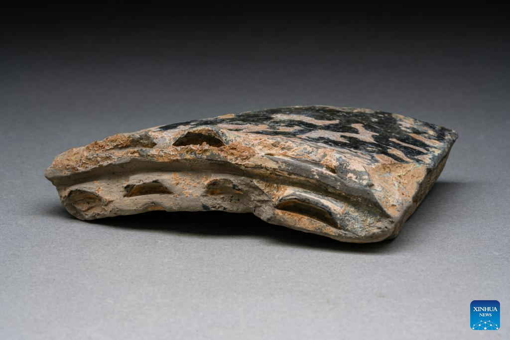 This file photo shows a piece of architectural component discovered within the ruins of the Tongyifang, a residential compound for high-ranking officials and dignitaries in the renowned Chang'an City during the Sui (581-618) and Tang (618-907) dynasties, in Xi'an, northwest China's Shaanxi Province. Archaeologists have uncovered 25 relic sites in Xi'an, the capital city of northwest China's Shaanxi Province, with finds including ash pits and wells dating back to the Sui and Tang dynasties, the Shaanxi Academy of Archaeology announced on Thursday. (Shaanxi Academy of Archaeology/Handout via Xinhua)
