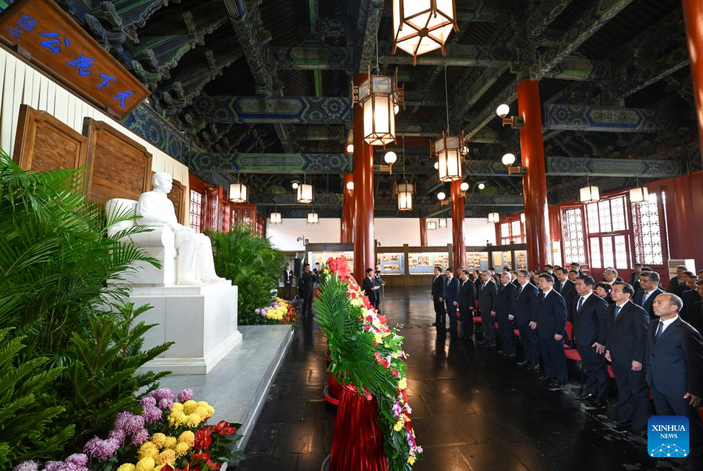 Hosted by the National Committee of the Chinese People's Political Consultative Conference (CPPCC), the event saw attendees paying tribute with flowers and bows in front of Sun's statue.