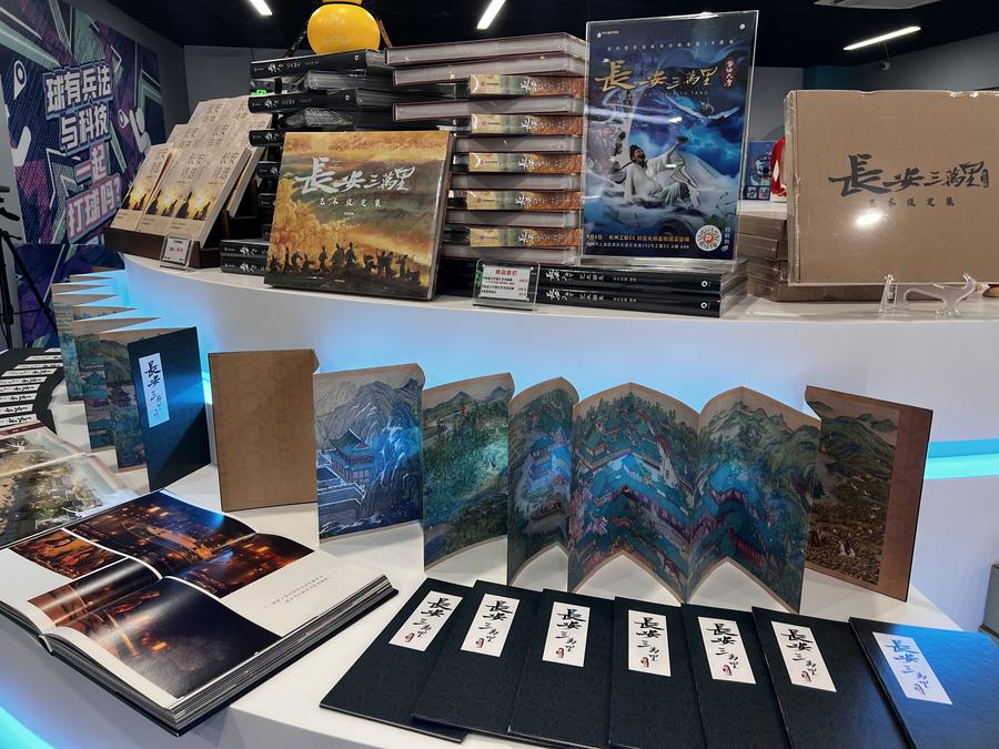 This photo taken on Nov. 14, 2025 shows creative products themed on "Chang An" displayed at a shop of Times Light Field in Gonglian City Center in Hangzhou, east China's Zhejiang Province. (Xinhua/Ji Hang)