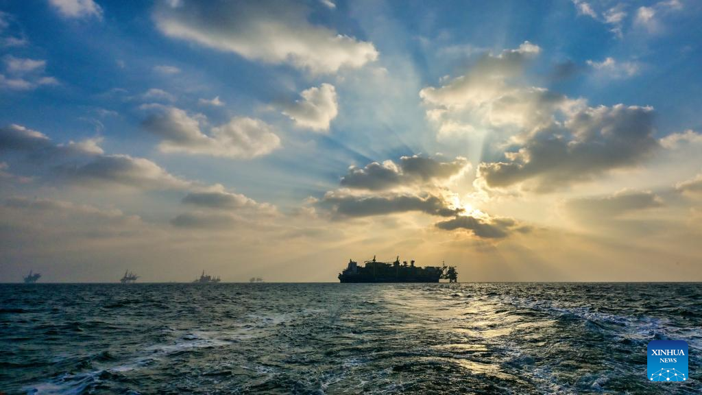 This photo taken on Dec. 21, 2025 shows the offshore oil and gas platforms in Bohai Oilfield.(Photo by Du Penghui/Xinhua)