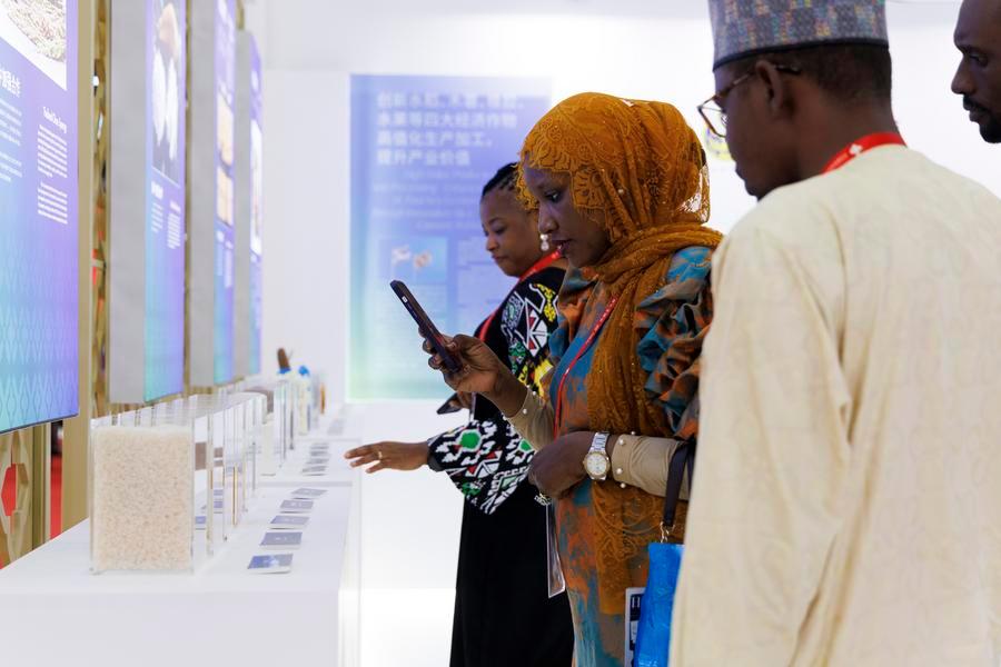 Visitors from Nigeria learn about agricultural products at the pavilion of Thailand during the third China International Supply Chain Expo (CISCE) in Beijing, capital of China, July 17, 2025. (Xinhua/Jin Liwang)