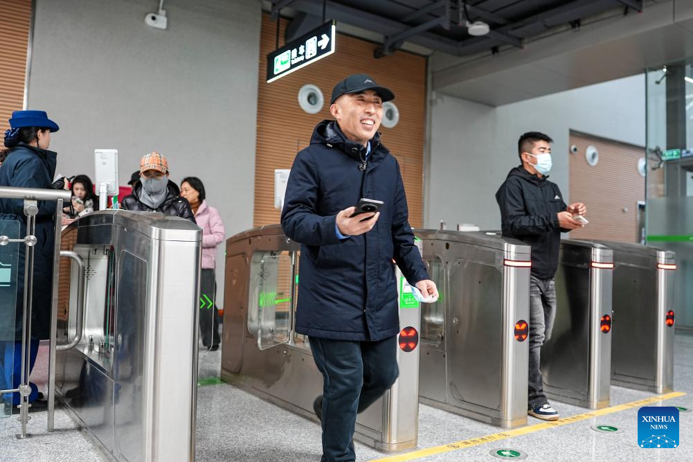 Citizens enter the Quancheng Park Station of Jinan Subway Line 4, in Jinan, east China's Shandong Province, Dec. 27, 2025. China's first subway line passing through a karst spring area began operation on Saturday in Jinan, marking an engineering breakthrough that balances urban transit demands with the protection of natural water resources. Jinan Subway Line 8 and the east section of Jinan Subway Line 6 started operation on the same day, increasing the city's total rail transit mileage to 248 kilometers. (Xinhua/Zhu Zheng)