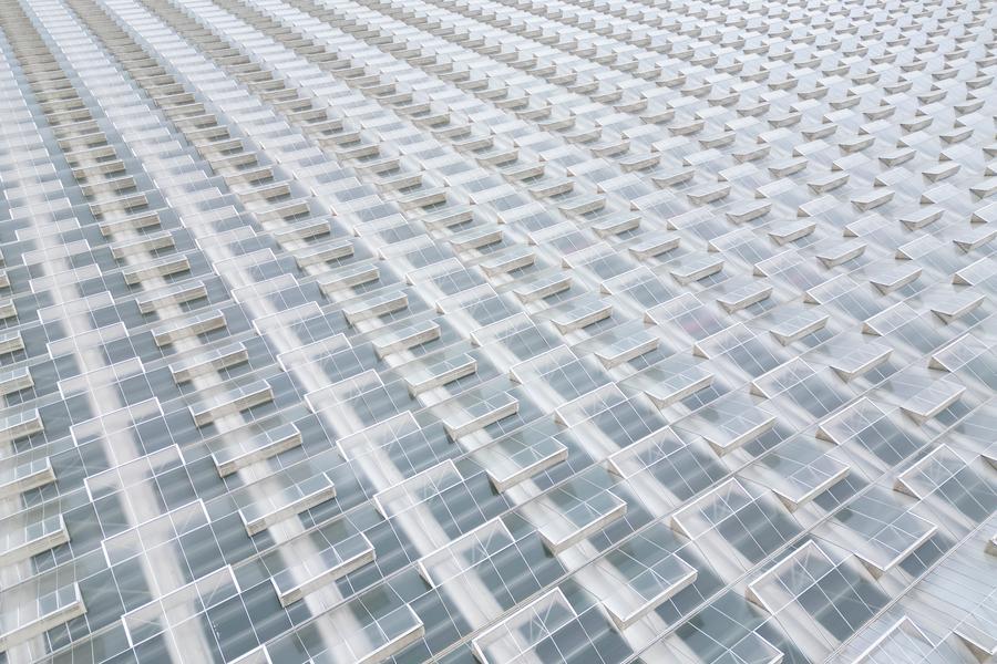 An aerial drone photo taken on July 2, 2025 shows smart glass greenhouses at a modern agricultural industrial park in Fuyuan City, northeast China's Heilongjiang Province. (Xinhua/Zhang Tao)