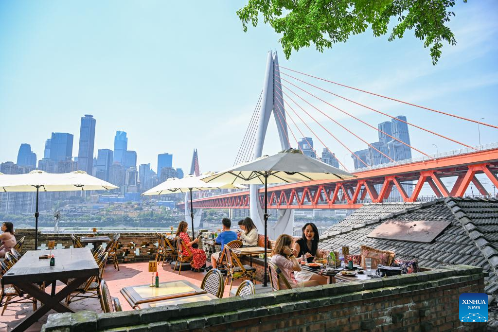 People dine at a restaurant along the Yangtze River in Chongqing, southwest China, May 1, 2025. Acting as a crucial ecological gateway for the upper reaches of the Yangtze River, Chongqing has intensified its environmental protection efforts in recent years.