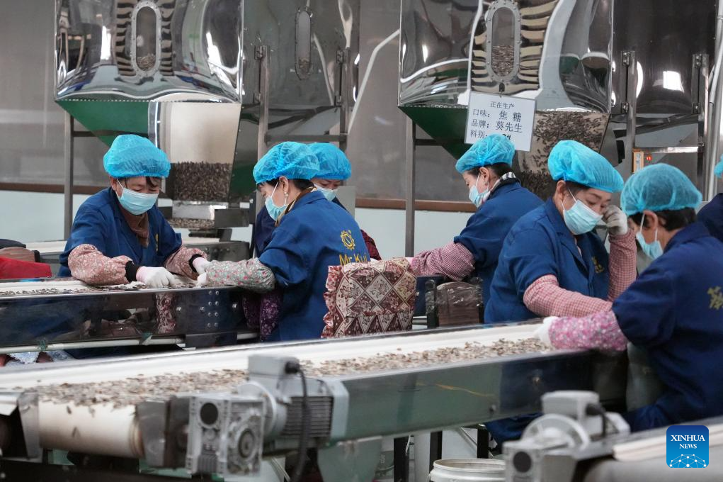 In a humming factory in north China's Inner Mongolia Autonomous Region, conveyor belts carry plump sunflower seeds through sorting machines, separating them by size and color before sealing them into export-ready bags.