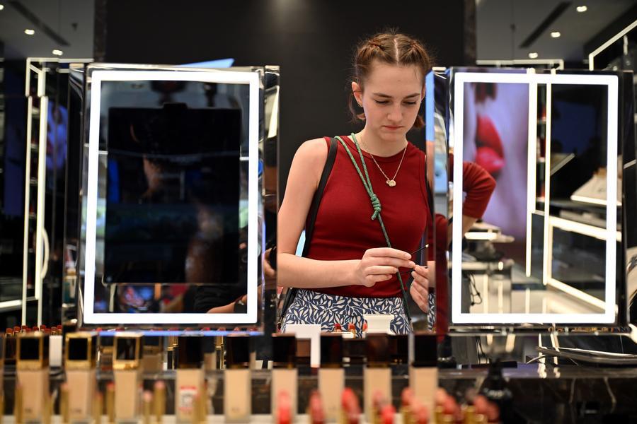 A customer shops at the Sanya International Duty Free City in Sanya, south China's Hainan Province, on Jan. 10, 2026. (Xinhua/Guo Cheng)
