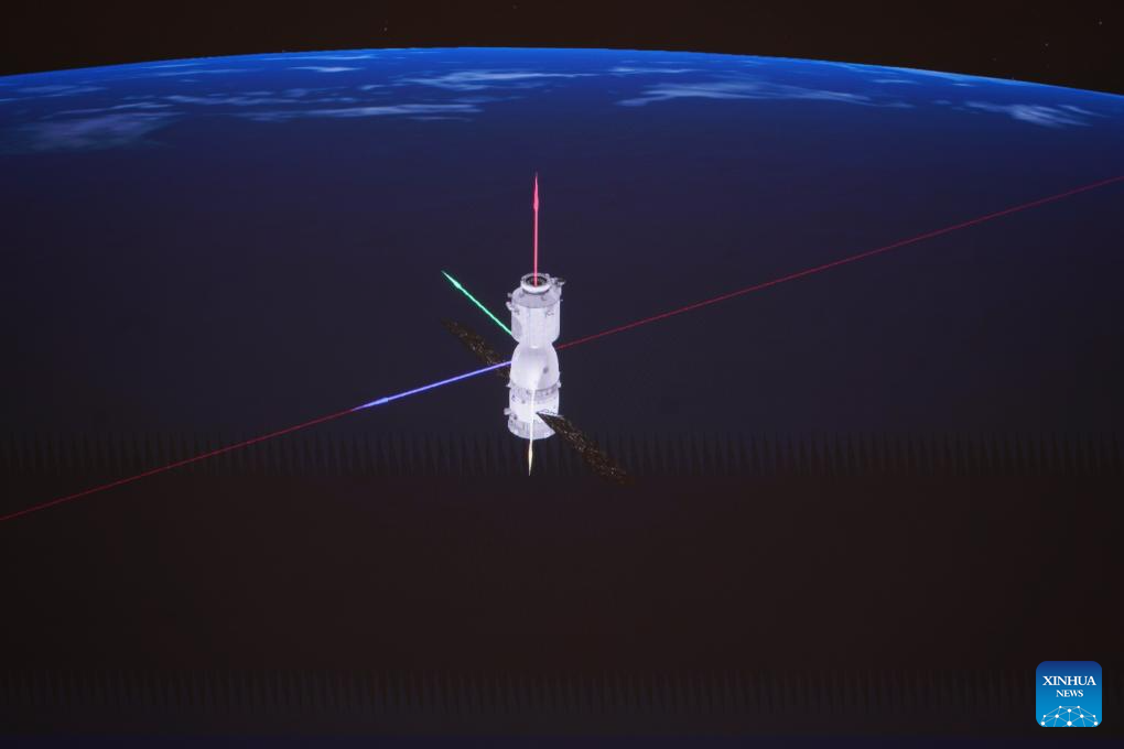 This simulated image captured at Beijing Aerospace Control Center on Jan. 19, 2026 shows the Shenzhou-20 spaceship after separating from the space station. The return capsule of the Shenzhou-20 spaceship, carrying no astronauts, touched down at the Dongfeng landing site in north China's Inner Mongolia Autonomous Region at 9:34 a.m. (Beijing Time) on Monday, according to the China Manned Space Agency (CMSA).