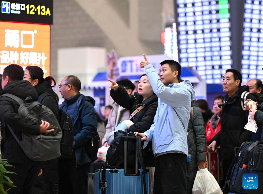 Passengers wait to check in at Shijiazhuang Railway Station in Shijiazhuang, north China's Hebei Province, Feb. 2, 2026. (Photo by Chen Qibao/Xinhua)