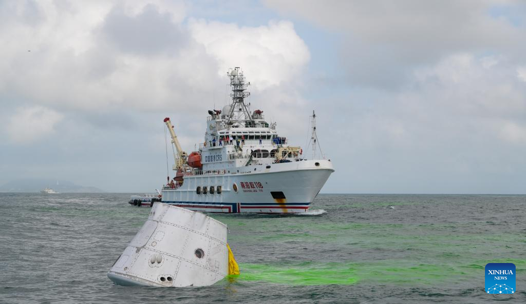 The rocket's first stage and the spaceship's return capsule splashed down separately in the predetermined sea areas in a controlled manner as planned.