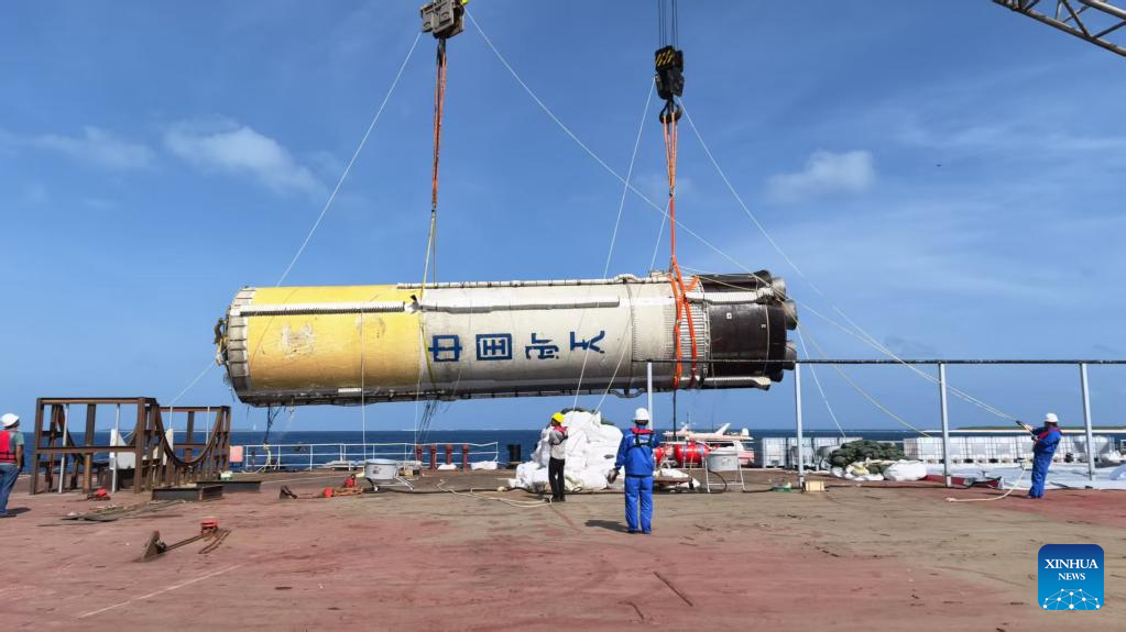 The first stage of the Long March-10 carrier rocket has been successfully fished out and retrieved from the sea, marking China's completion of its first-ever rocket first-stage booster maritime salvage and recovery mission.
