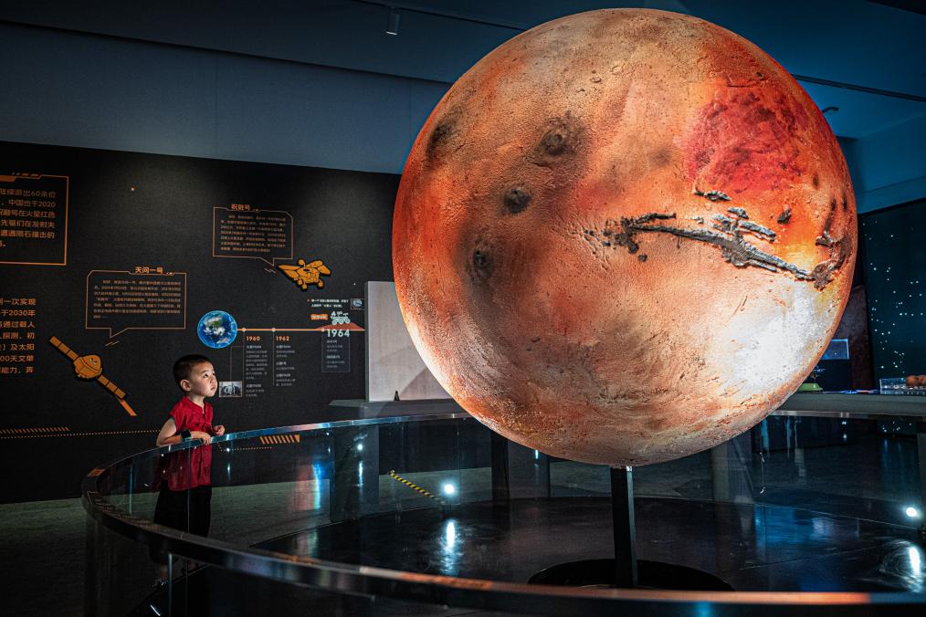 A boy visits a science fiction-themed planetary science experience exhibition at China Building Science Museum in Wuhan, central China's Hubei Province, July 18, 2025. (Xinhua/Xiao Yijiu)
